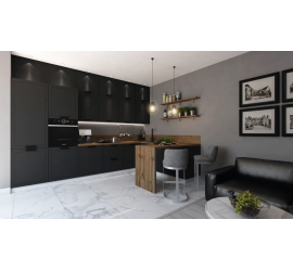 Размер кухни: ширина 2600 мм, высота 2100 мм (Складывается из высоты нижних, верхних модулей и высоты стандартного фартука 600 мм), глубина по столешнице 600 мм